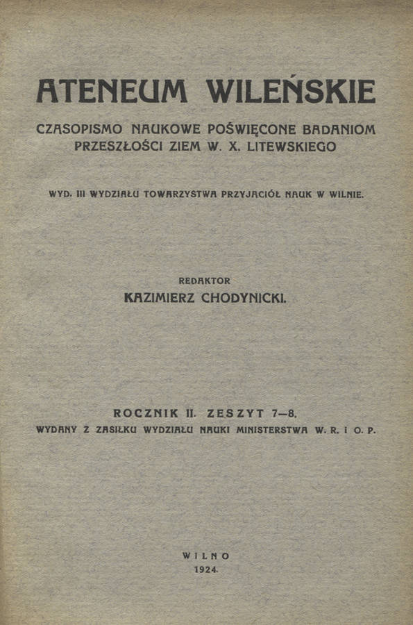 III Towarzystwa Przyjaciół Nauk w Wilnie. R. 2 (1924), z. 5-6, 7-8. 23 cm, s.