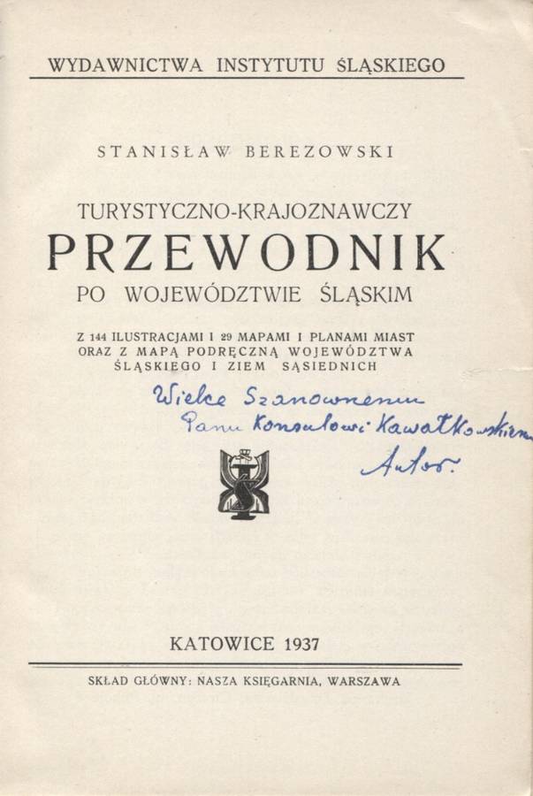 międzywojennego po woj. śląskim, z odręczną dedykacją autora dla Aleksandra