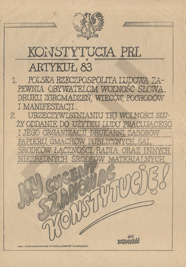 83. 1. Polska Rzeczpospolita Ludowa zapewnia obywatelom wolność słowa, druku,