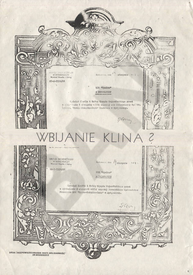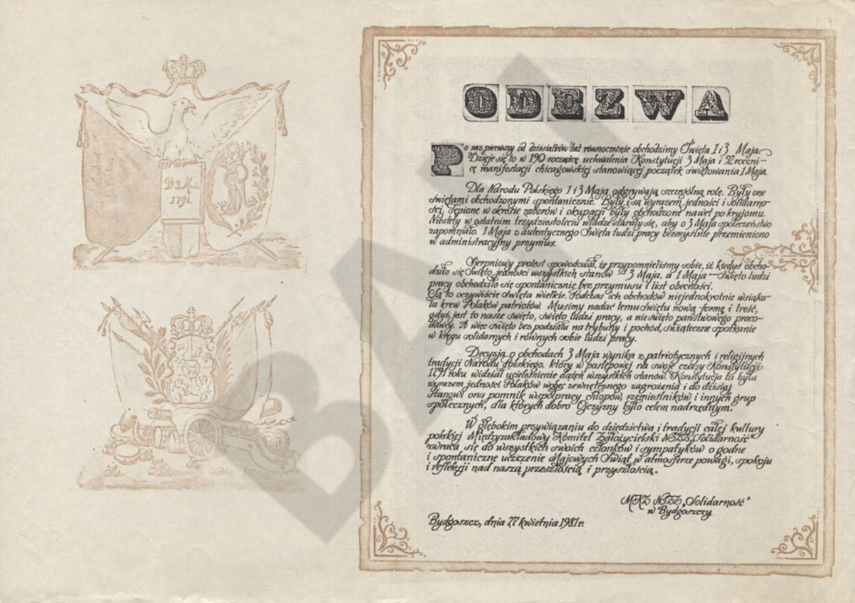 MKZ NSZZ „Solidarność” w Bydgoszczy. Tekst odezwy w ramce. Po lewej stronie... [więcej]