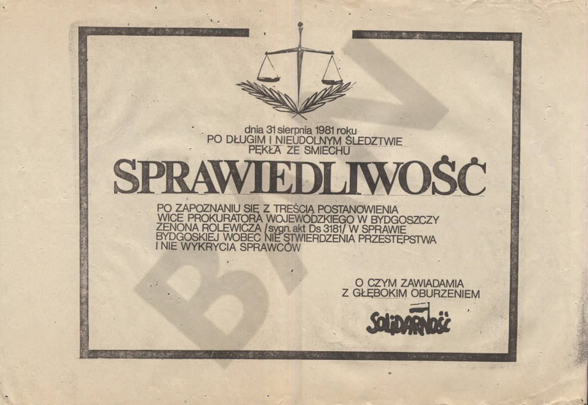 Dnia 31 sierpnia 1981 roku po długim i nieudolnym śledztwie pękła ze śmiechu SPRAWIEDLIWOŚĆ...40.00 zł