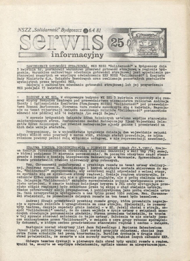 Niezależnego Samorządnego Związku Zawodowego „Solidarność” / red. zespół. Bydgoszcz, NSZZ „Solidarność”. R. 2 (1981), nr 4 (11)