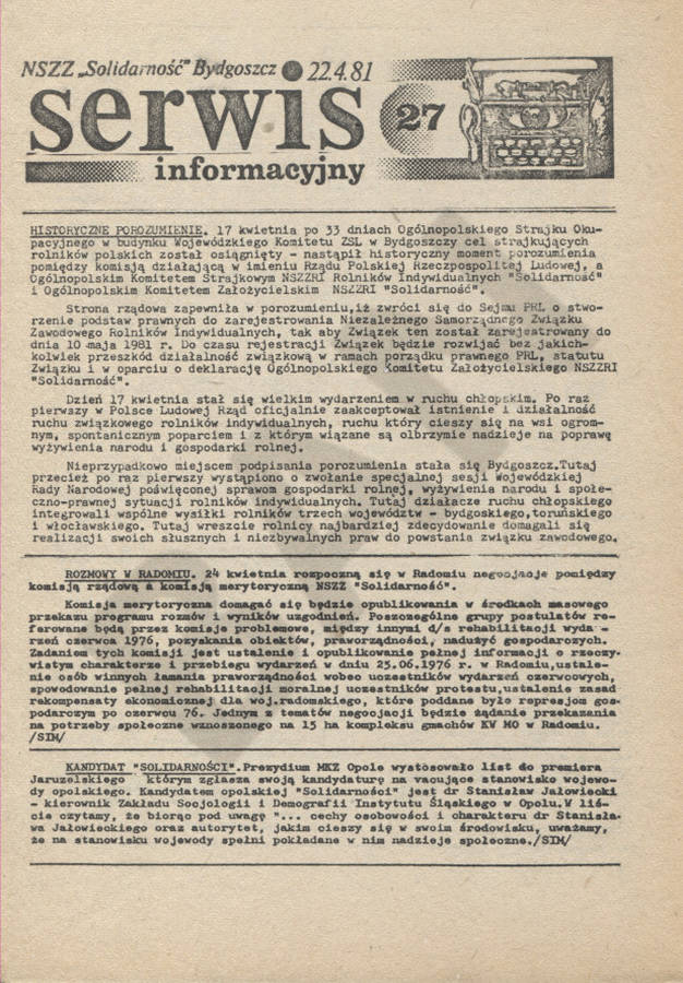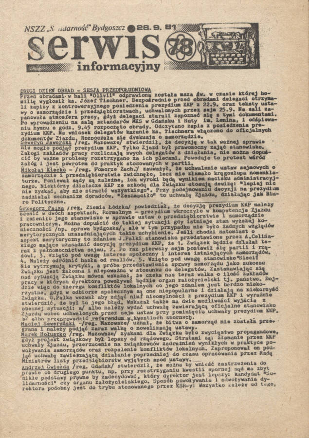 15 [nie przed 1985]. 30 cm, s. 58. Niezależny Samorządny Związek Zawodowy
