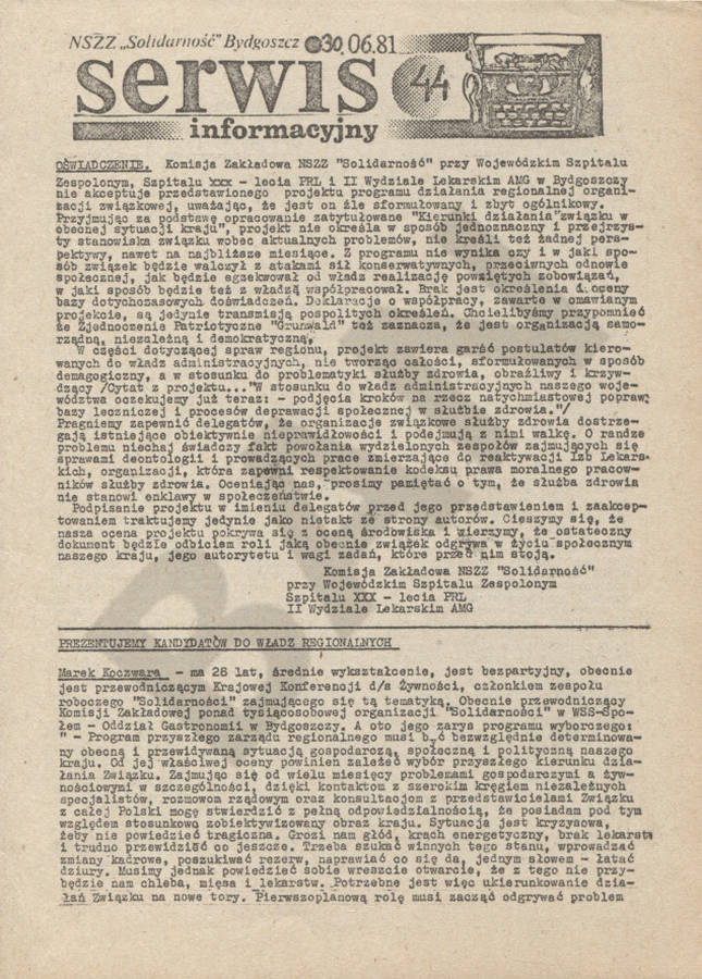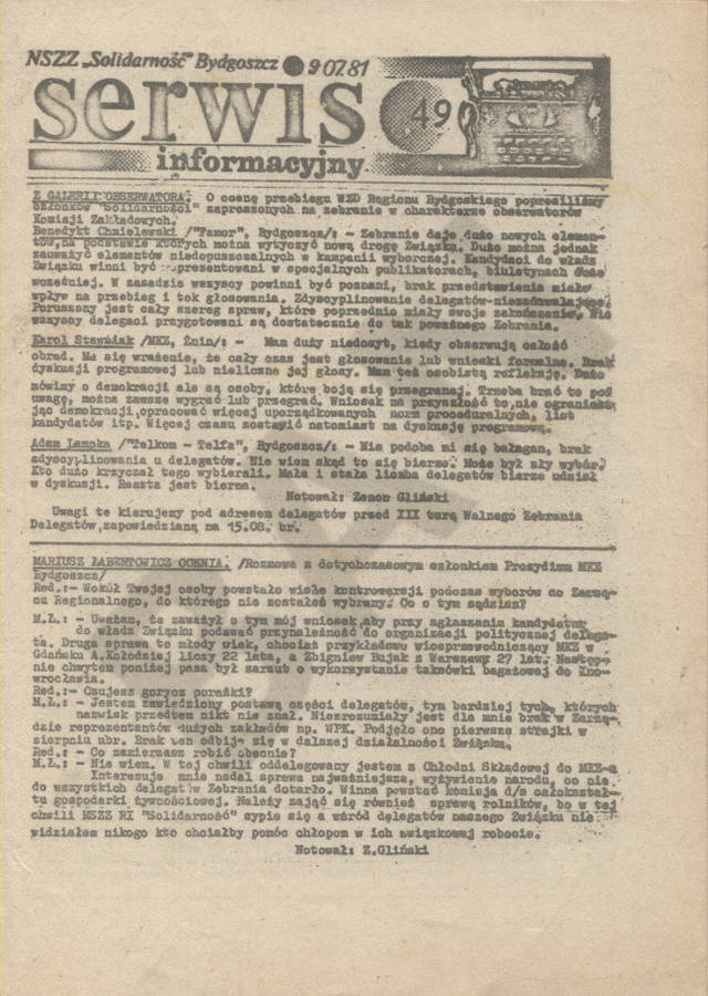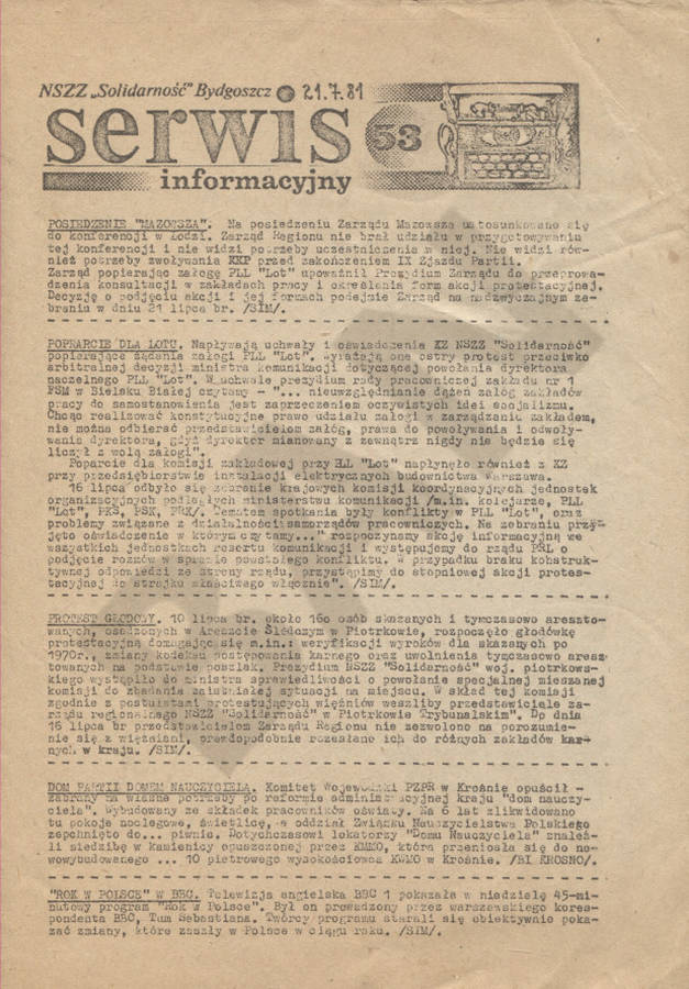 (przewodniczący). Bydgoszcz, NSZZ „Solidarność”. R. 1 (1980), nr 6-7... [więcej]