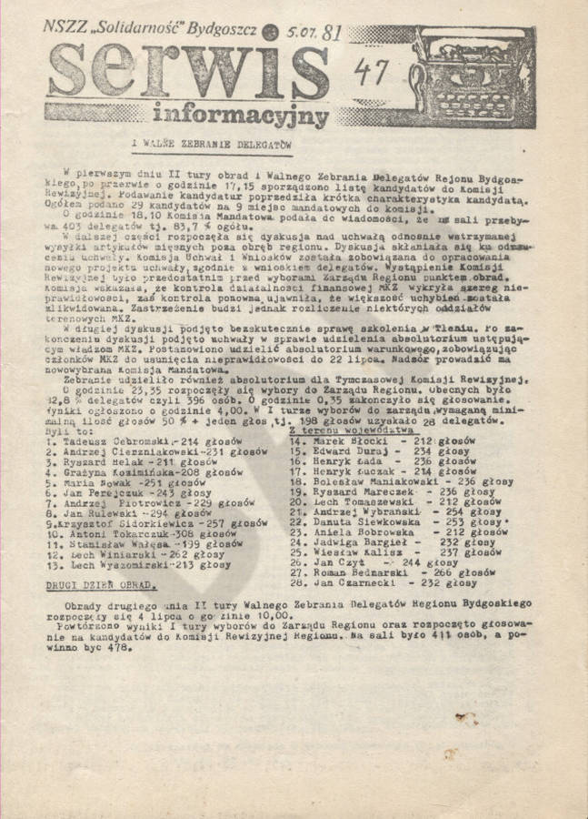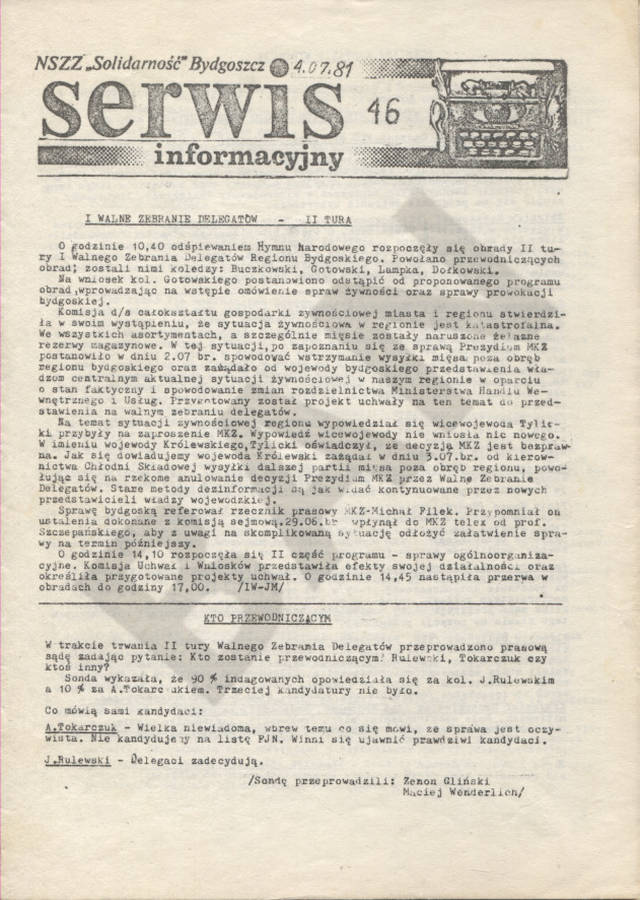 Tokarczuk (przewodniczący). Bydgoszcz, NSZZ „Solidarność”. R. 2 (1981), nr 1 (8)... [więcej]