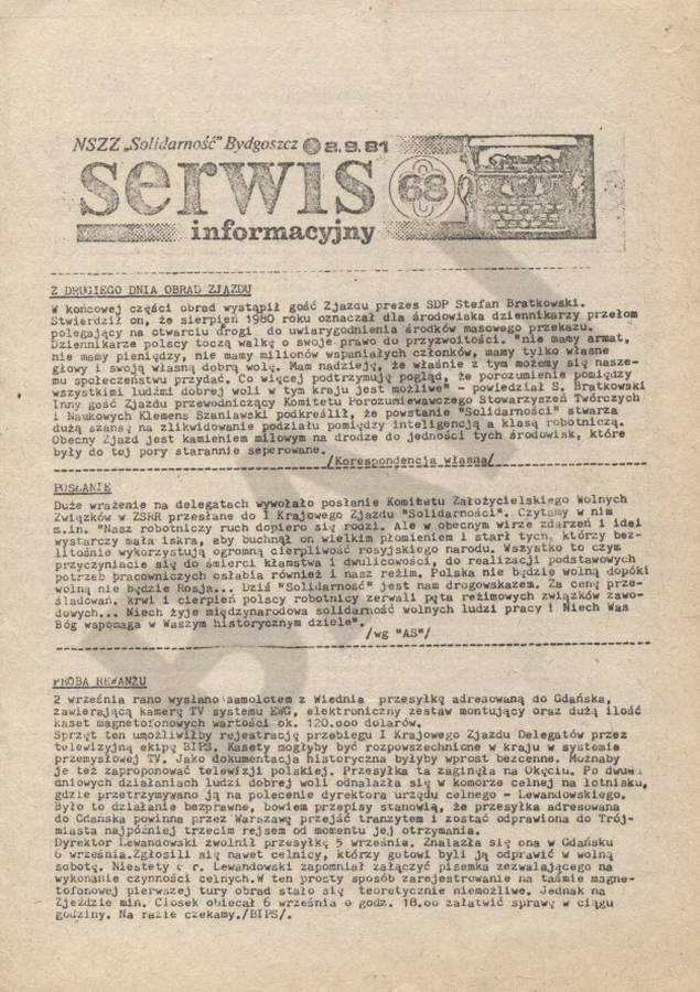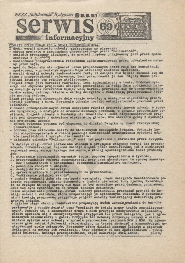 [Warszawa, „Solidarność”]. R. 1983, nr 69 (24.XI.). 30 cm, s. 4. Motto: „Solidarność”
