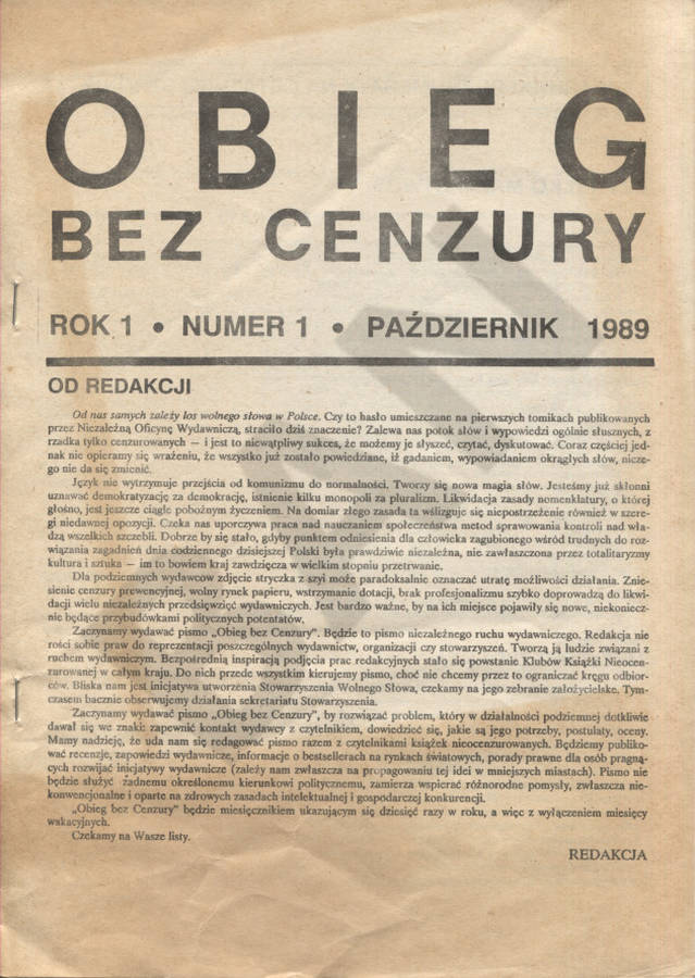 sierpień-wrzesień. 30 cm, s. 66. Jedno z najważniejszych czasopism niezależnych