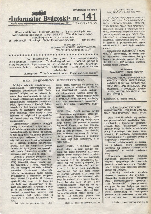 „Solidarność”. R. 1989, nr 141 ( 17. 03.). 21 cm, s. [2]. [więcej]