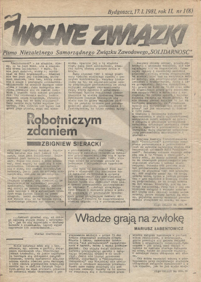 Wolne Związki. R. 2 (1981), nr 1 (8).15.00 zł