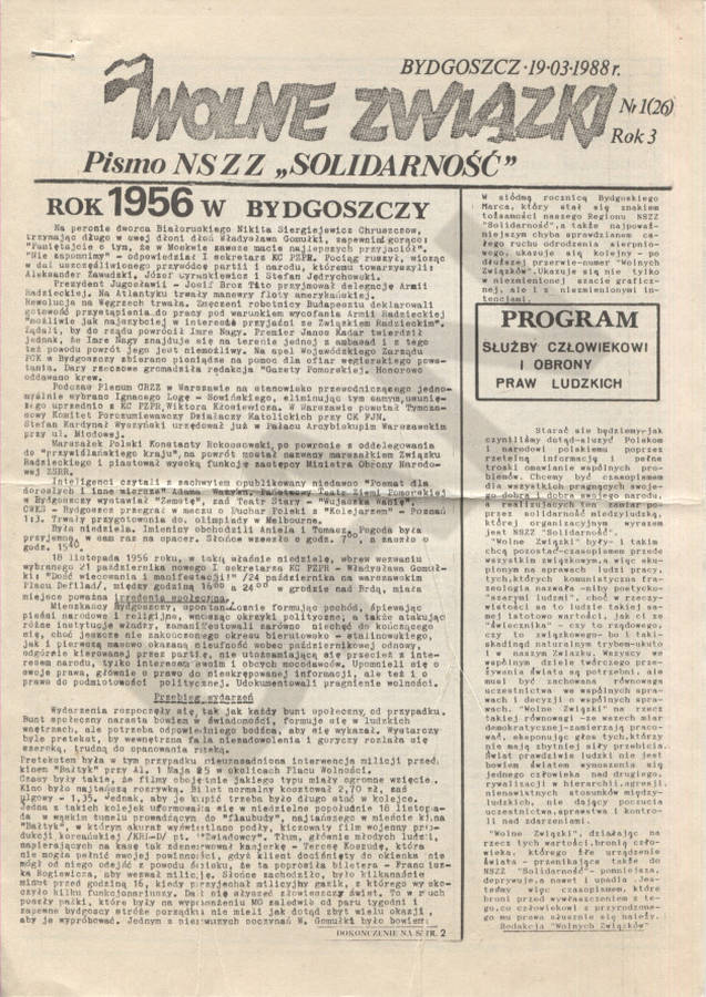 NSZZ „Solidarność”. Bydgoszcz, NSZZ „Solidarność”. R. 3 (1988), nr 1 (26) (19.3.).