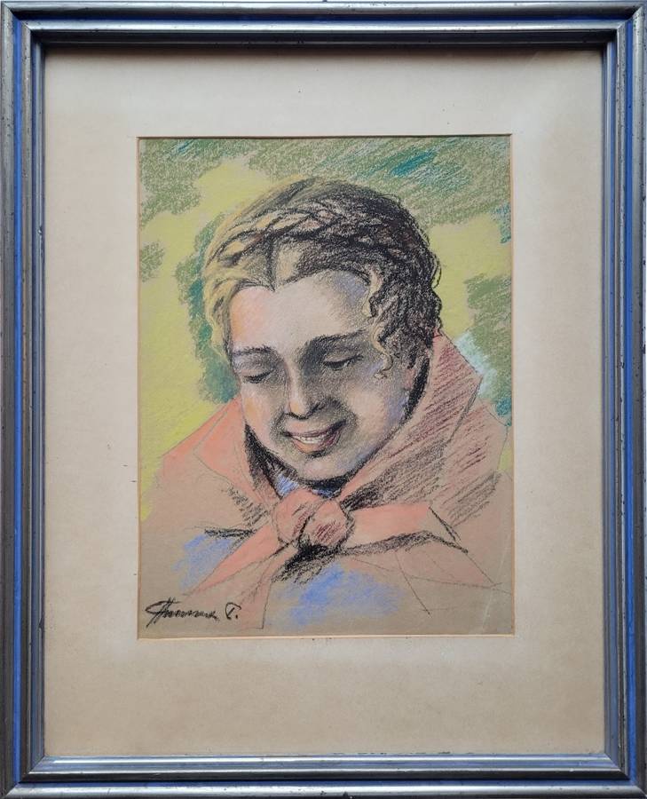 (1888-1981?) – Portret. Lata 20/30 XX wieku. Pastel, kredka, papier 20,5x14,5
