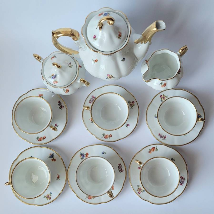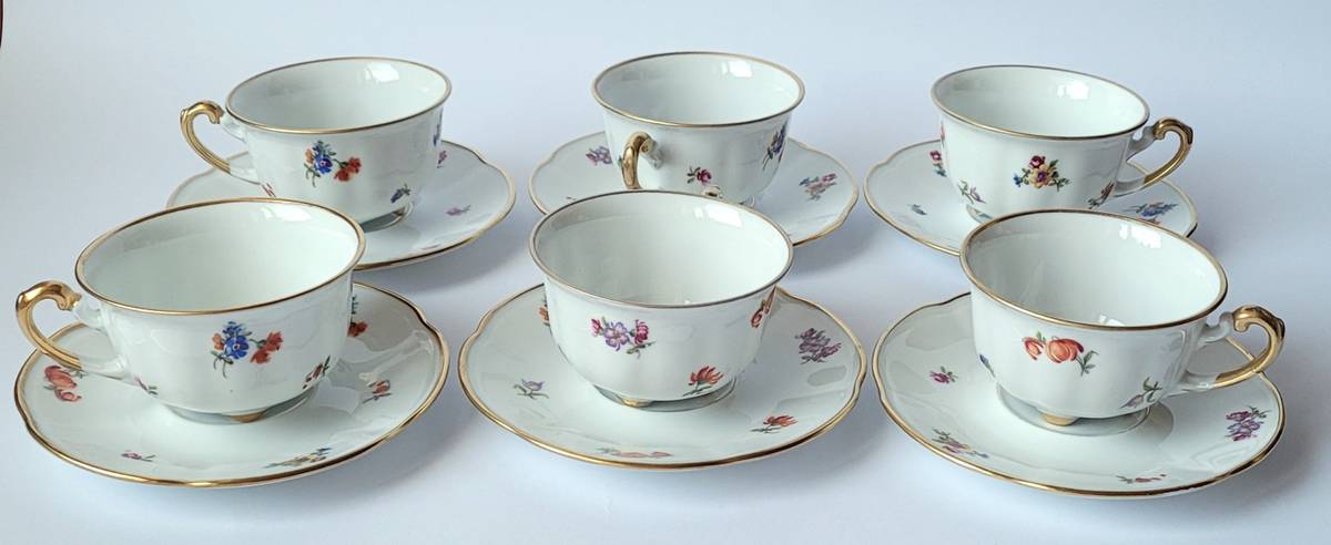 do herbaty, fason 520, dekoracja 6099. Serwis porcelanowy do herbaty na 6 osób:
