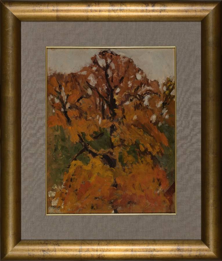 (1878-1954) – Drzewo jesienią. Olej na tekturze 43×33 cm (w świetle