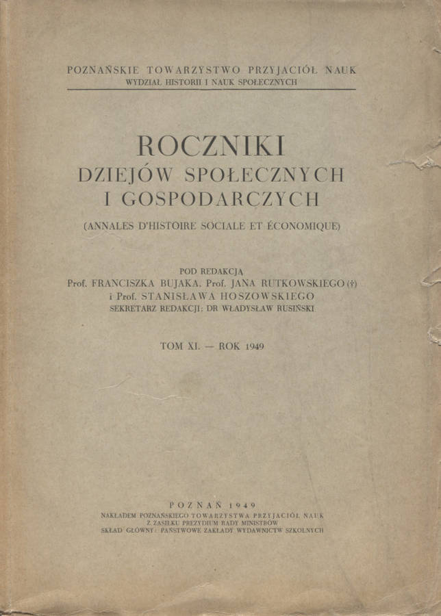 Roczniki Dziejów Społecznych i Gospodarczych. T. 11 (1949).50.00 zł