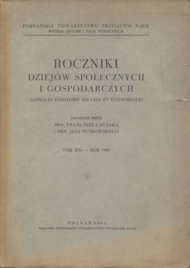 Roczniki Dziejów Społecznych i Gospodarczych. T. 13 (1951).50.00 zł
