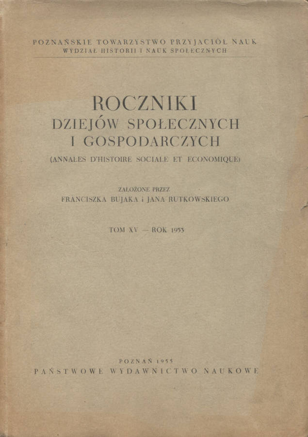 Roczniki Dziejów Społecznych i Gospodarczych. T. 15 (1953).50.00 zł
