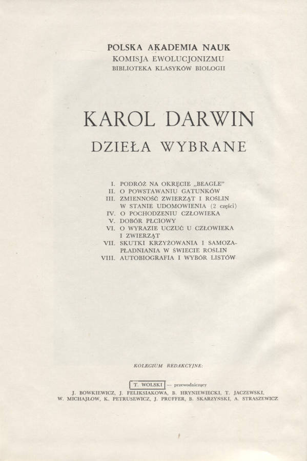 Nauk, Komisja Ewolucjonizmu. Biblioteka Klasyków Biologii. Drobny ubytek