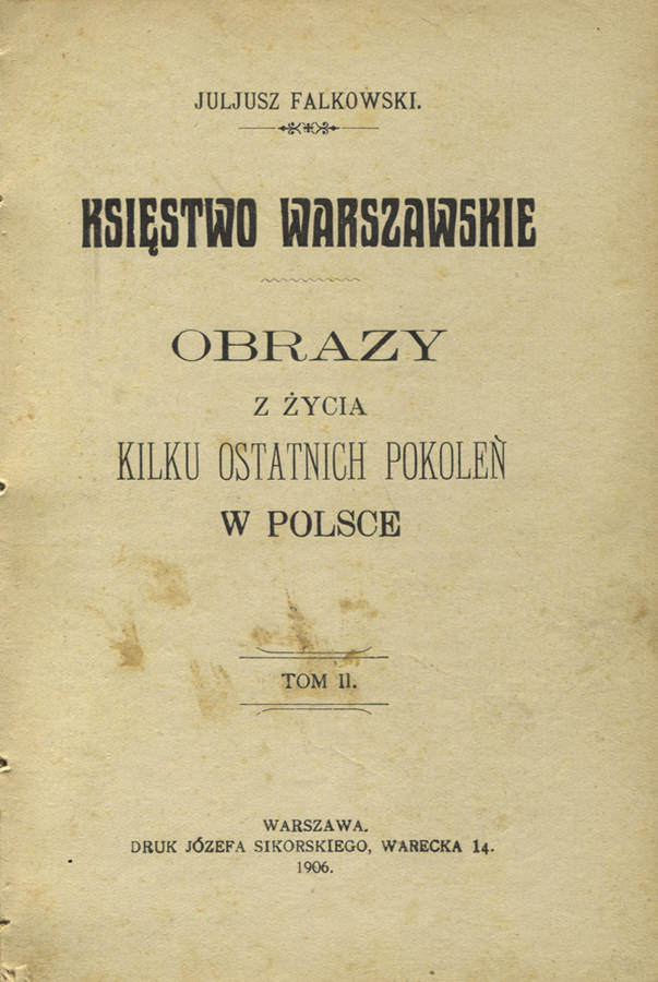 / Juljusz Falkowski. Warszawa 1906, Józef Sikorski. 18 cm, s. 160; 160.