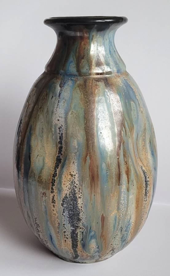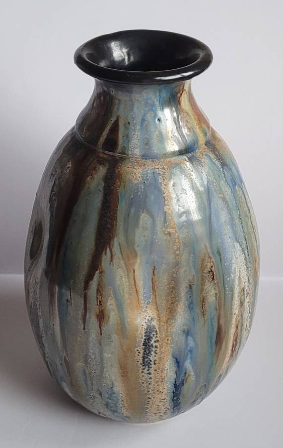 z kamionki (grès d'art), pokryte charakterystycznymi, płynącymi, solnymi