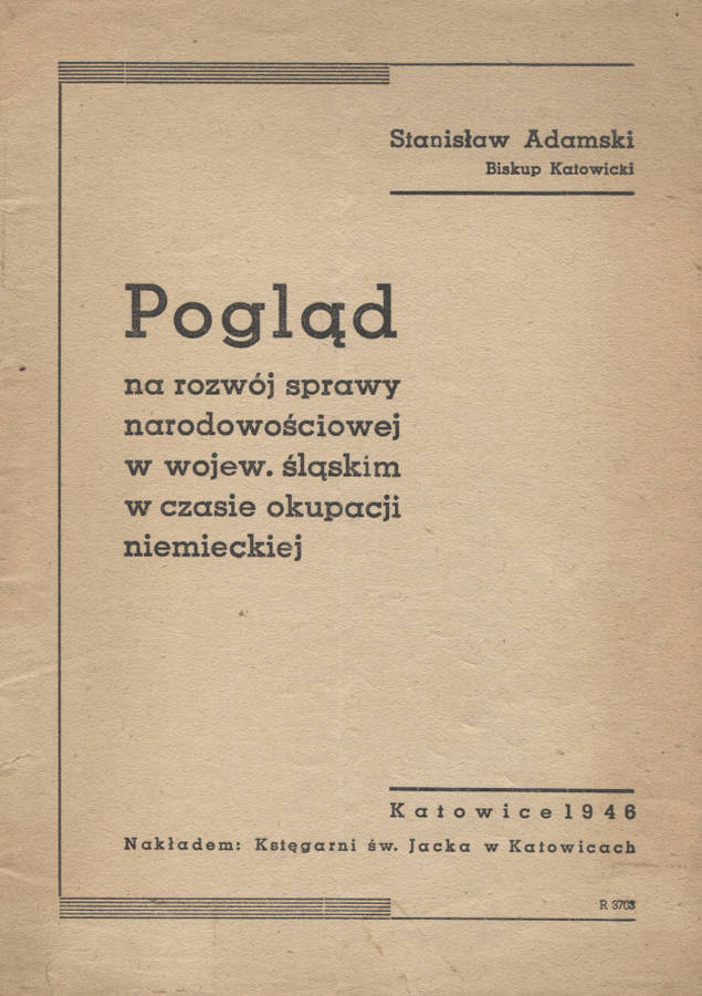 HISTORIA POLSKI II wojna światowaAdamski Stanisław – Pogląd na rozwój sprawy narodowościowej w wojew. śląskim w czasie okupacji niemieckiej.40.00 zł