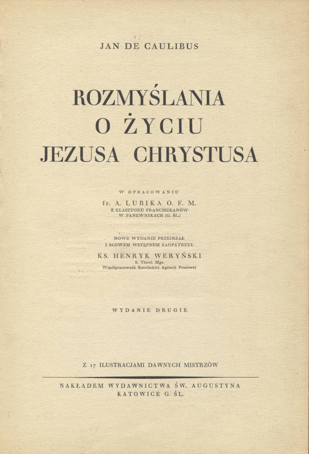 Jan z Calvoli – Rozmyślania o życiu Jezusa Chrystusa / Jan de Caulibus; w opracowaniu A. Lubika;