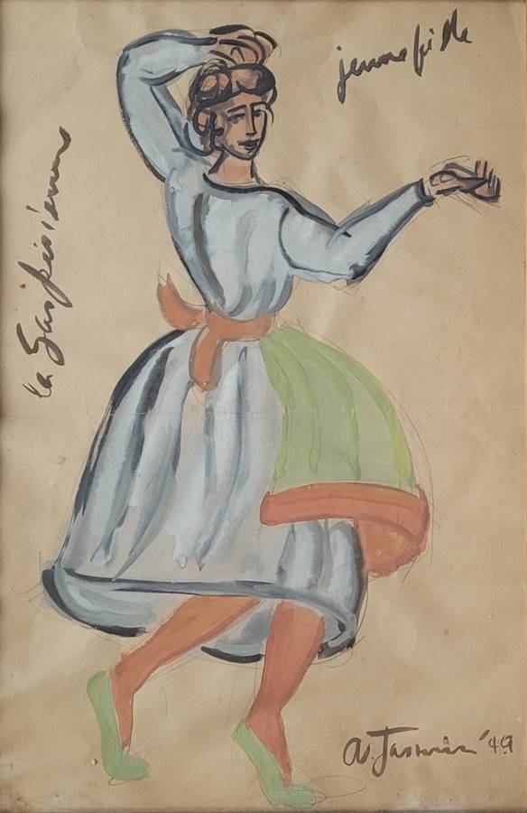 oprawy), sygn. i dat. p. d.: AJasmin 49. Szkice kostiumów do widowiska