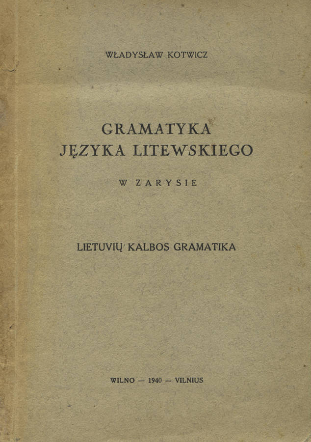 Gramatyka języka litewskiego w zarysie. Wilno 1940, b. wyd. 21 cm, s. 137, [1].