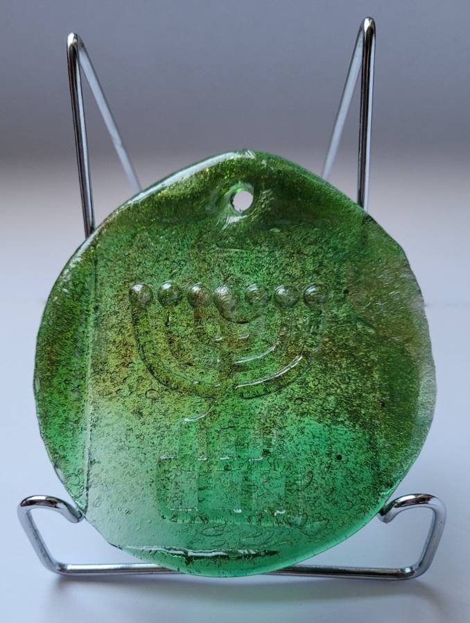 z motywem menory. Polska ok. 1900-1939. Szkło prasowane, barwione w masie,