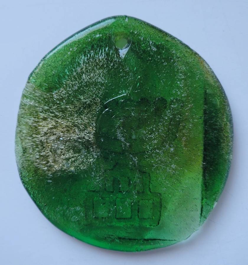 zieleń butelkowa z licznymi pęcherzykami powietrza, wymiary: 11,5x10,5 cm,
