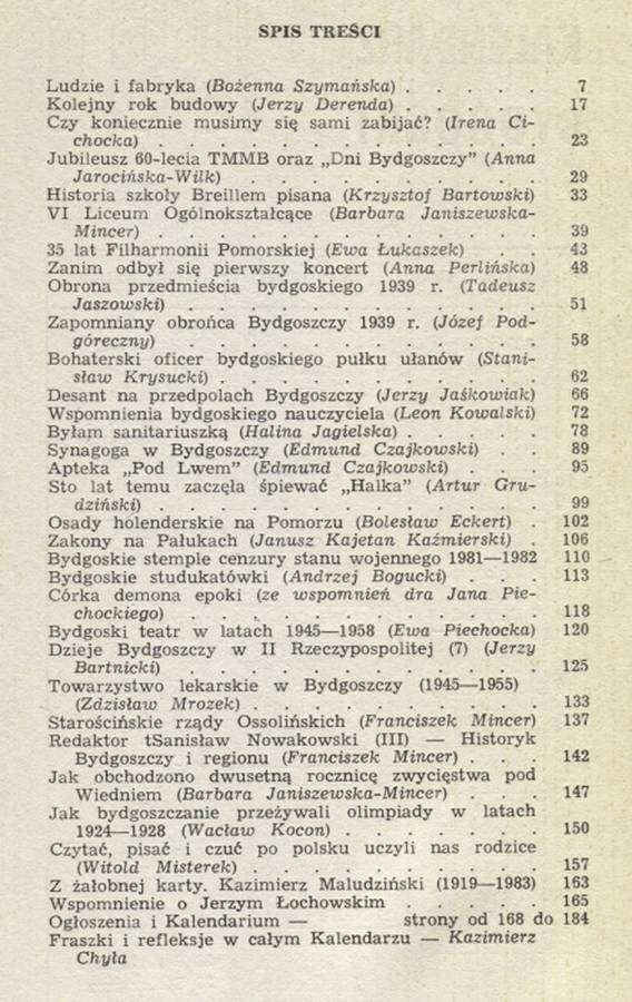 Kalendarz Bydgoski na rok 1984. Bydgoszcz, Towarzystwo Miłośników Miasta Bydgoszczy. Rocznik 17. 20 cm, s. 175, [9], ilustracje, plan. Prywatna piecz.