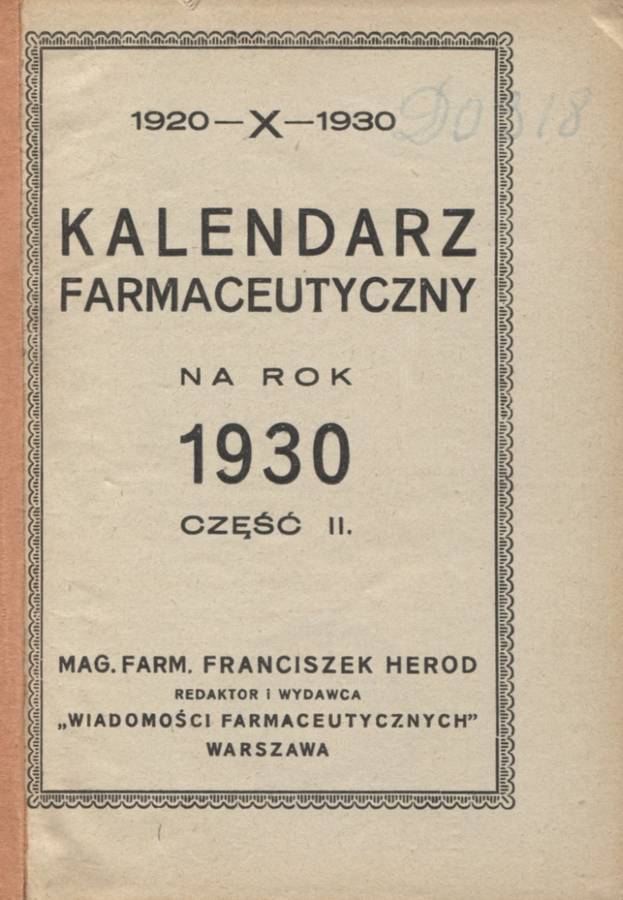 na rok 1930. Cz. 2. Warszawa, Franciszek Herod. 15 cm, s. [20], XXXII, [2],