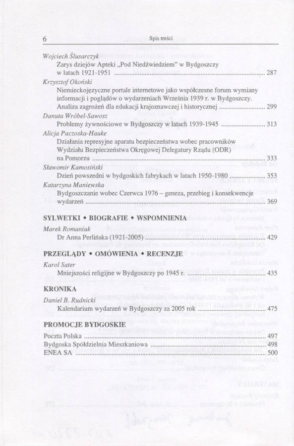 Kronika Bydgoska / Towarzystwo Miłośników Miasta Bydgoszczy. [T.] 27 : 2005. Bydgoszcz 2006. 23 cm, s. 494, ilustracje, mapy, plany. Podpis i data długopisem u dołu s. 5.