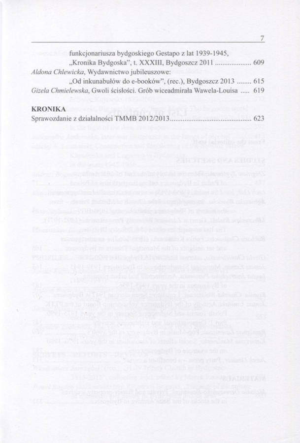 Kronika Bydgoska / Towarzystwo Miłośników Miasta Bydgoszczy. [T.] 34 : 2013. Bydgoszcz 2013. 23 cm, s. 655, ilustracje, plany.