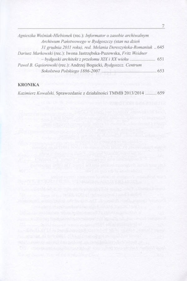 Kronika Bydgoska / Towarzystwo Miłośników Miasta Bydgoszczy. [T.] 35 : 2014. Bydgoszcz 2014. 23 cm, s. 695, ilustracje.