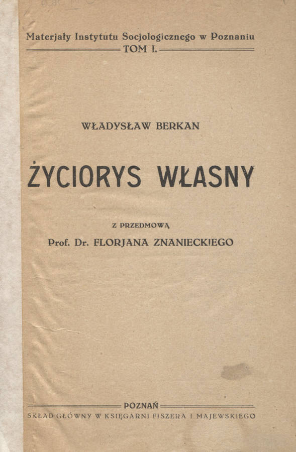 Życiorys własny / z przedmową Florjana Znanieckiego. Poznań 1924, skład główny