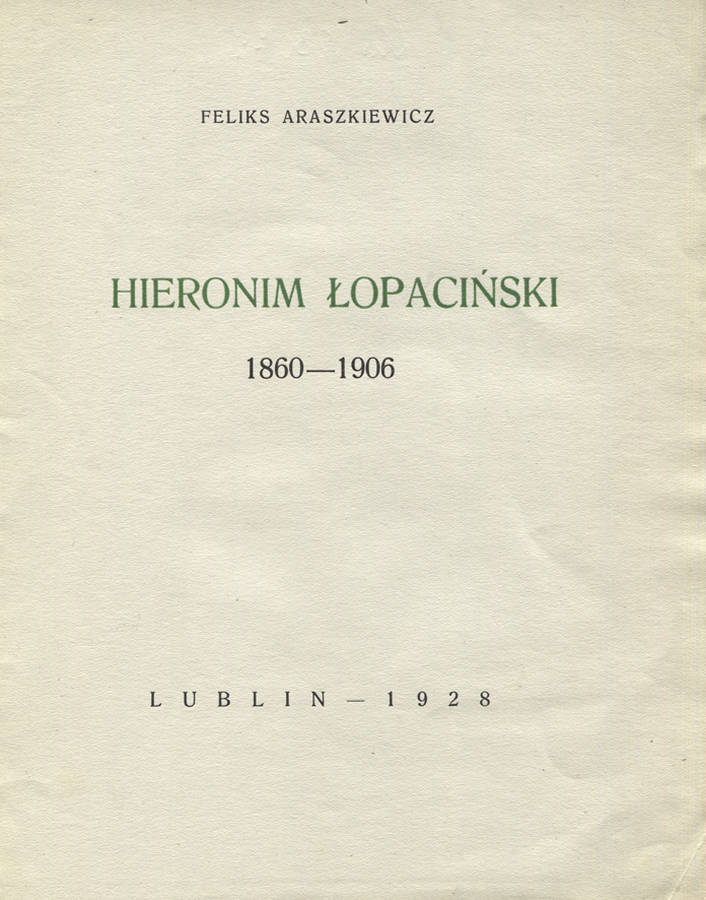 Hieronim Łopaciński : 1860-1906. Lublin 1928, Franciszek Raczkowski. 24 cm, s.