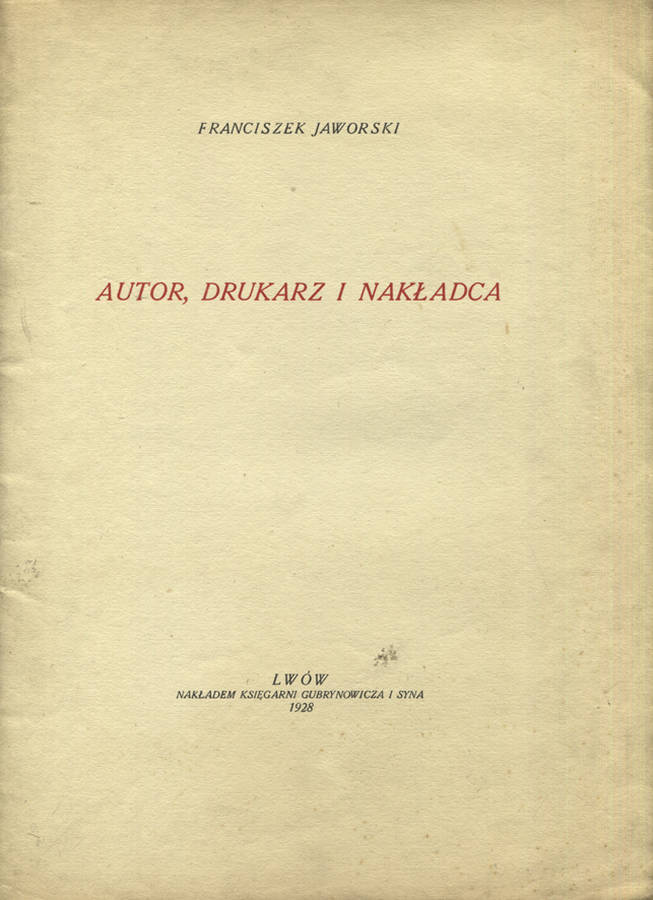 Autor, drukarz i nakładca. Lwów 1928, Księgarnia Gubrynowicza i Syna. 29