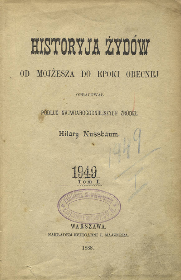 najwiarogodniejszych źródeł Hilary Nussbaum. Warszawa 1888, nakładem Księgarni