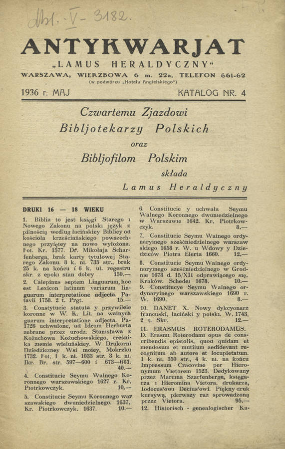 ... Poznań 1929, Biblioteka Raczyńskich. 24 cm, s. [4], 44. Katalog 333 druków... [więcej]