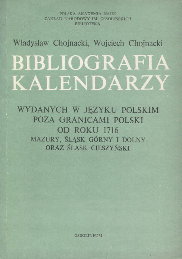 Zakład Narodowy im. Ossolińskich - Wydawnictwo Śląskie Prace Bibliograficzne i Bibliotekoznawcze ISBN / ISSN 83-04-01451-3, 0583-5291