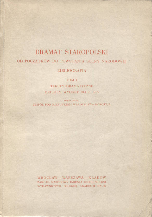 Wyd. 1. Wrocław 1965, Zakład Narodowy im. Ossolińskich - Wydawnictwo. 20 cm, s.