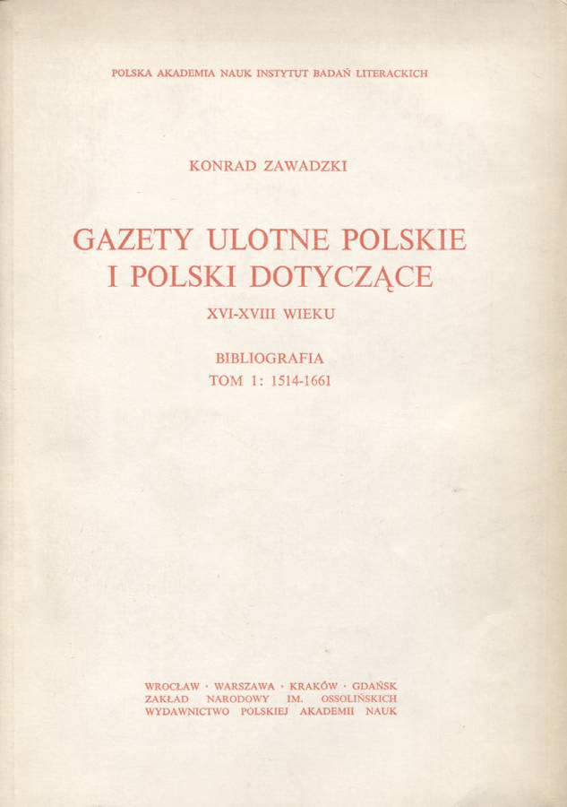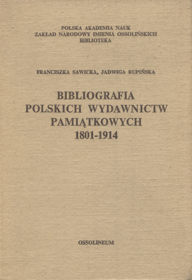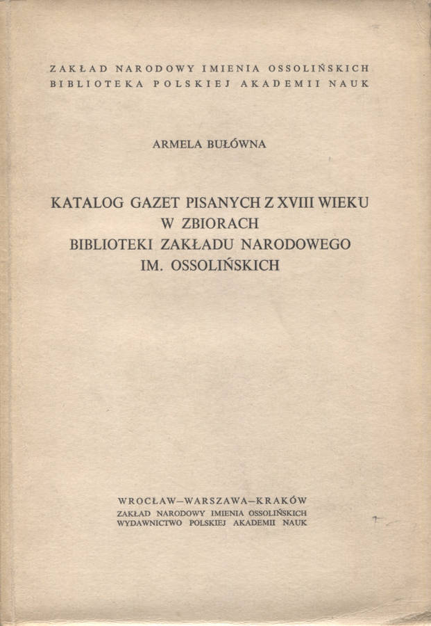 Zakład Narodowy im. Ossolińskich - Wydawnictwo Książki o Książce ISBN / ISSN 83-04-00868-8
