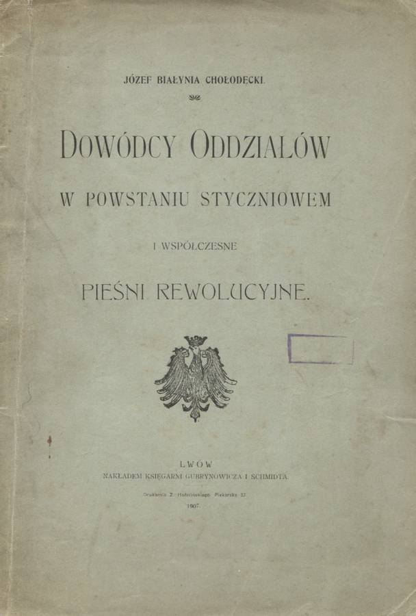 Białynia Chołodecki Józef – Dowódcy oddziałów w powstaniu styczniowem i współczesne pieśni rewolucyjne.70.00 zł