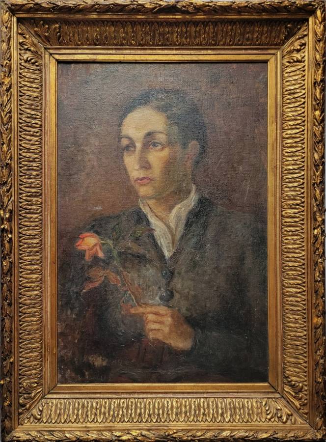 (1912-1991) – Portret kobiety z różą. Lata 30-te XX w. Olej na płótnie 68x44