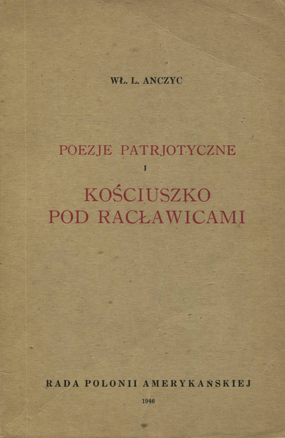 LITERATURA PIĘKNA polskaAnczyc Władysław Ludwik – Poezje patrjotyczne i Kościuszko pod Racławicami.50.00 zł