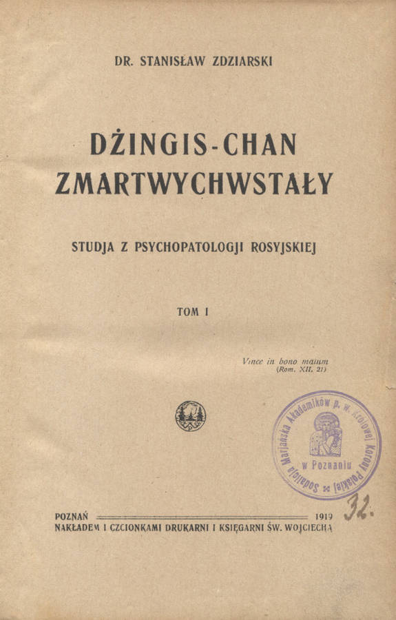 Dżingis-Chan zmartwychwstały : studja z psychopatologji rosyjskiej. T. 1.