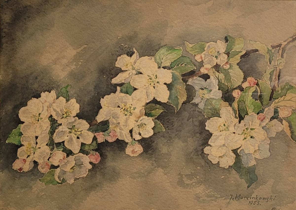 (1906-1978) – Gałąź kwitnącej jabłoni. 1953. Akwarela na papierze 24,5x35 cm (w