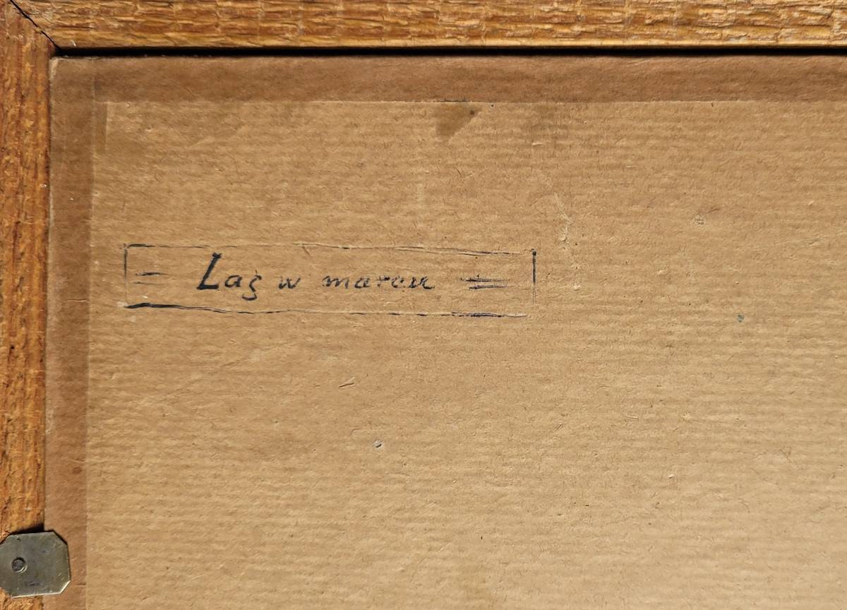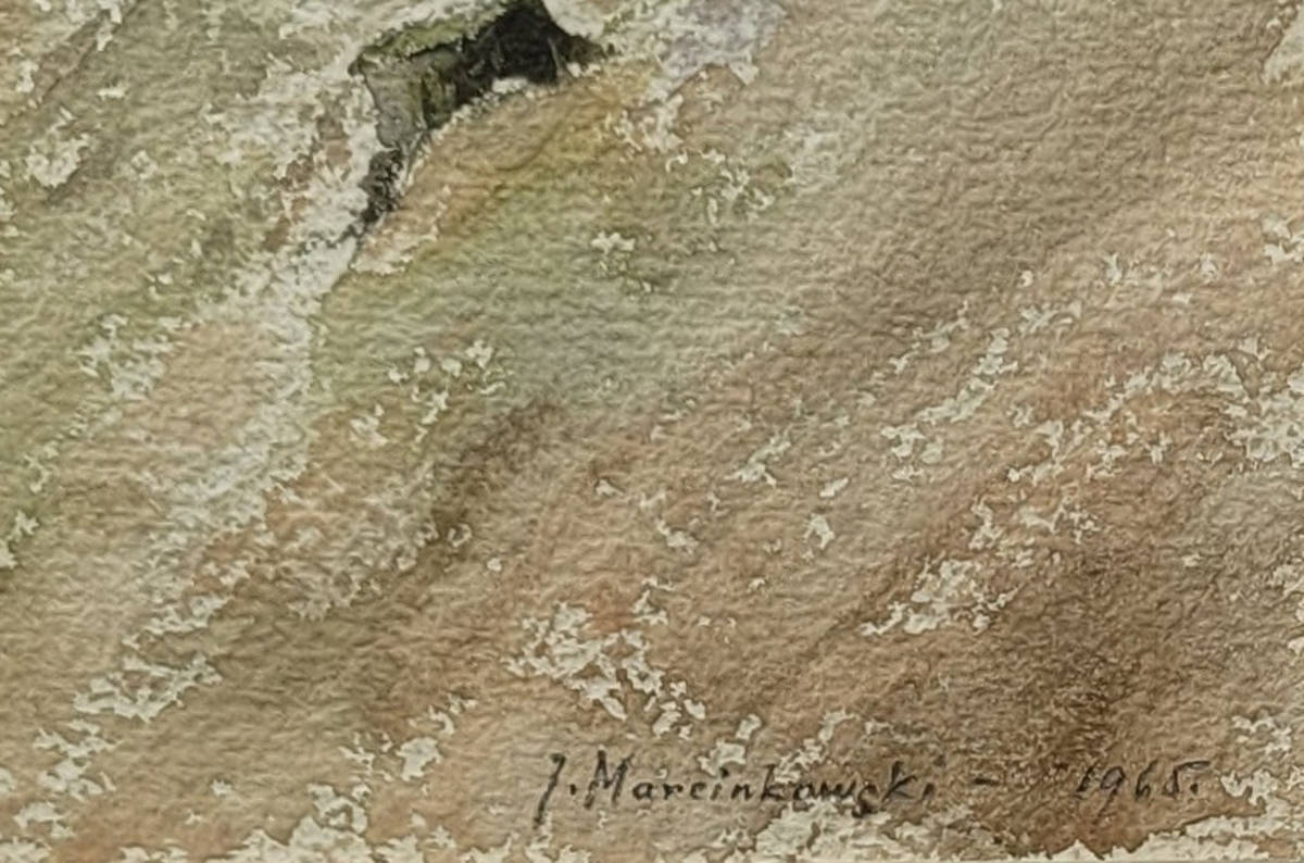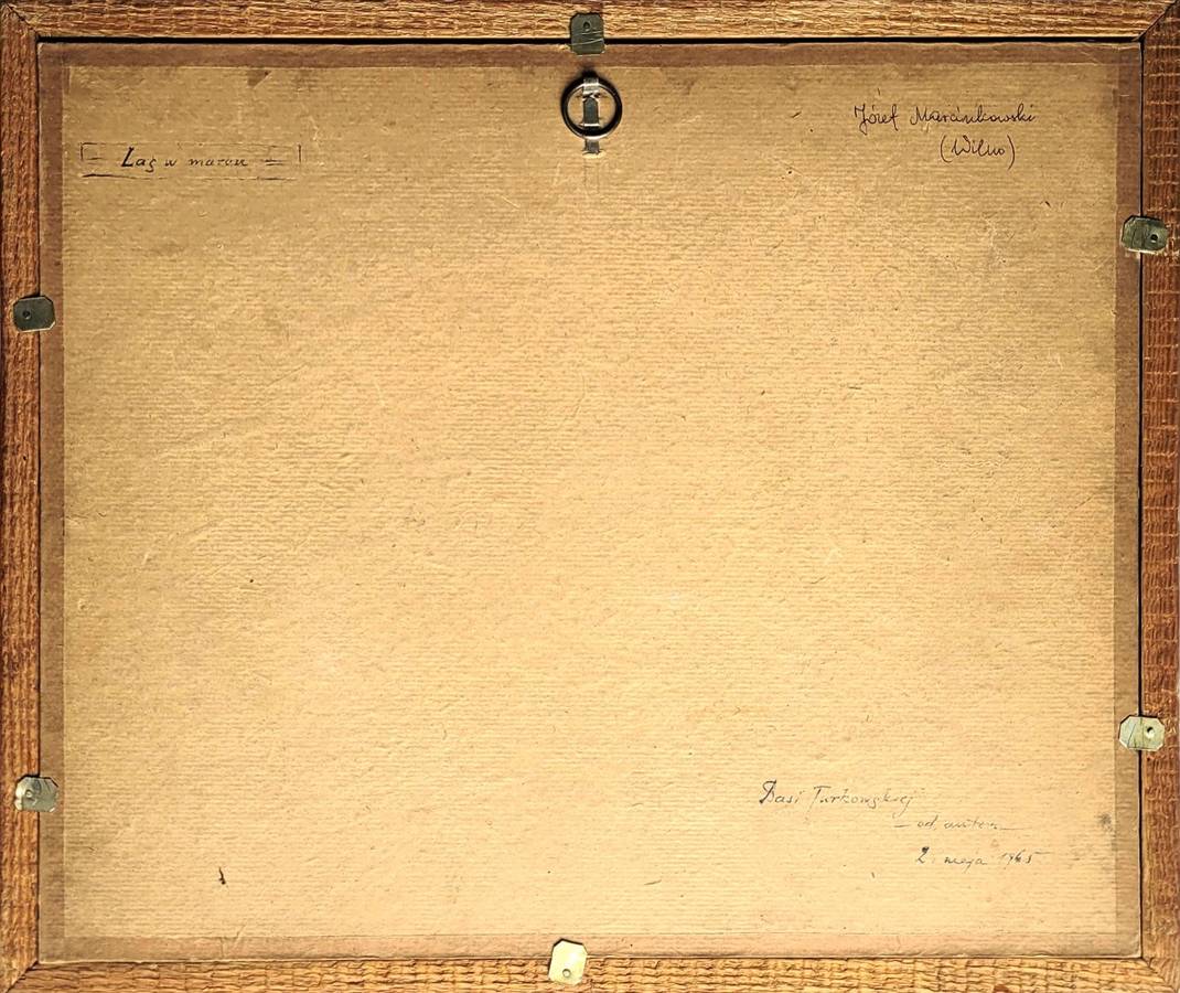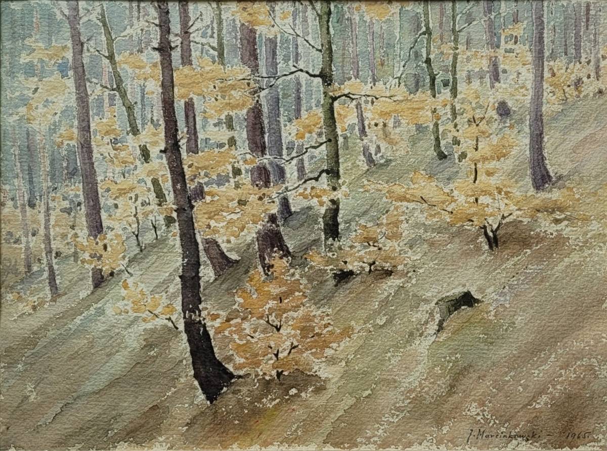 passe-partout), sygn. p. d.: J. Marcinkowski - 1965. Na odwrocie tytuł obrazu: „Las