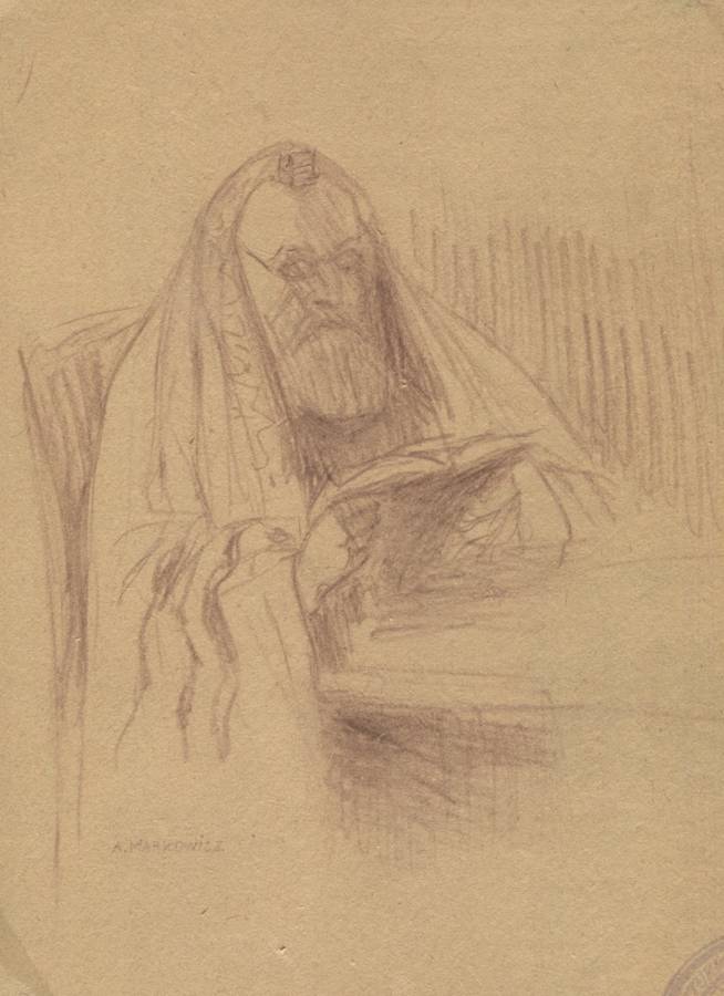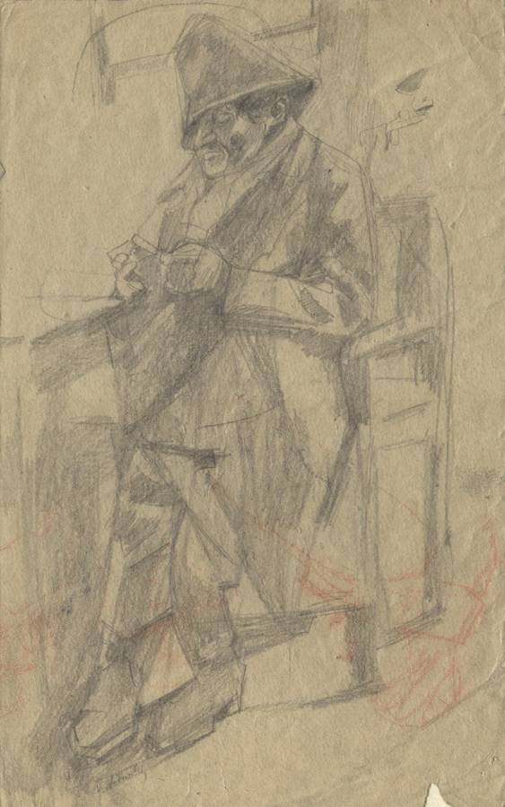 papier 25x17 cm, sygn. p. d. (5) Szkic czytającej postaci. Ołówek, papier 31x20