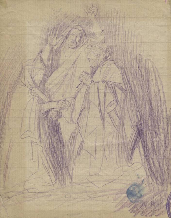 cm, sygn. l. d. (6) Szkic 2 postaci. Kredka, papier 21x17 cm, sygn. p. d. (7)
